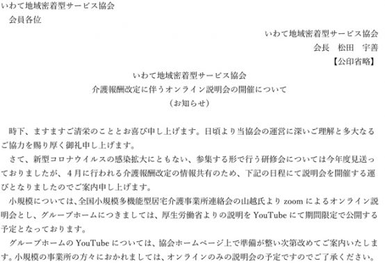 介護報酬改定に伴うオンライン説明会