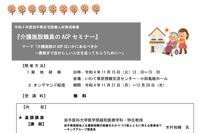 「介護施設職員のACOセミナー」につきましては、ご後援を賜り会員施設にご周知頂いておりますこと心より感謝申し上げます。